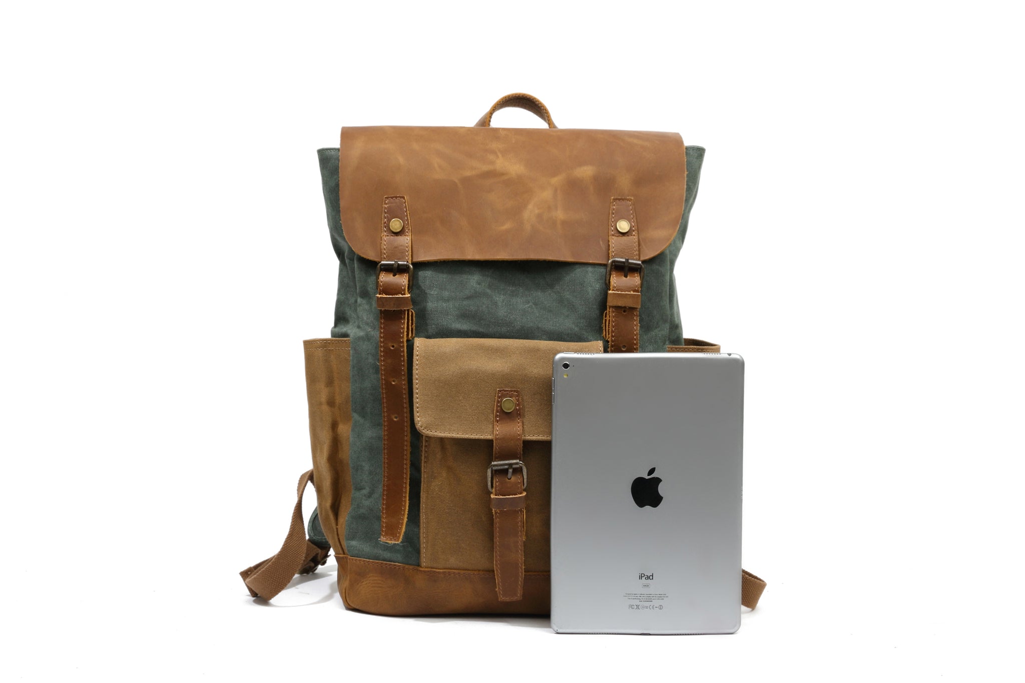Design Premium water-repellent waxed canvas can protect your things from the rain. The wide shoulder straps were designed to disperse the weight to ensure comfort and can be easily adjusted. The handle is made of the same cowhide and is fixed by high-quality hardware. A dedicated laptop compartment (27cm wide) will keep your laptop well protected and easily accessible.Â