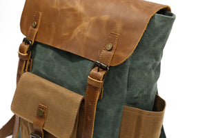 Premium Quality Material This backpack is made of waterproof durable canvas and top quality genuine crazy horse leather. The premium quality ensures the long lasting durability.Â